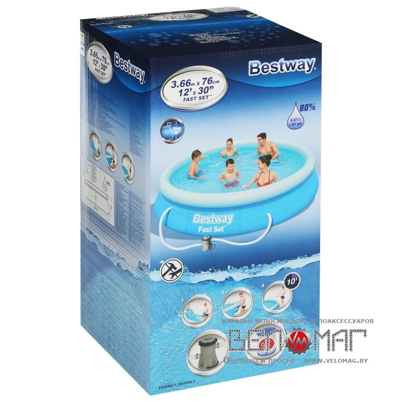 Бассейн надувной BestWay Fast Set 366х76 с фильтр-насосом (57274)