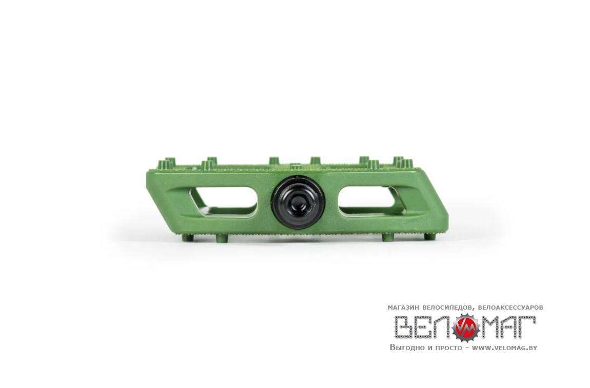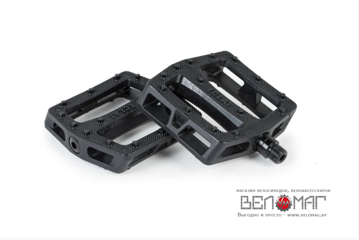 Сама же платформа имеет большие габариты, а наличие углубления платформы в сочетании с большими шипами и микро-накаткой - создают ощущение "встёгнутой" ноги в педаль, тем самым очень надежно фиксируя и предотвращая возможность сорваться ноге при трюках или же соскальзнуть при ловле педалей, например. при тейл-випах.
