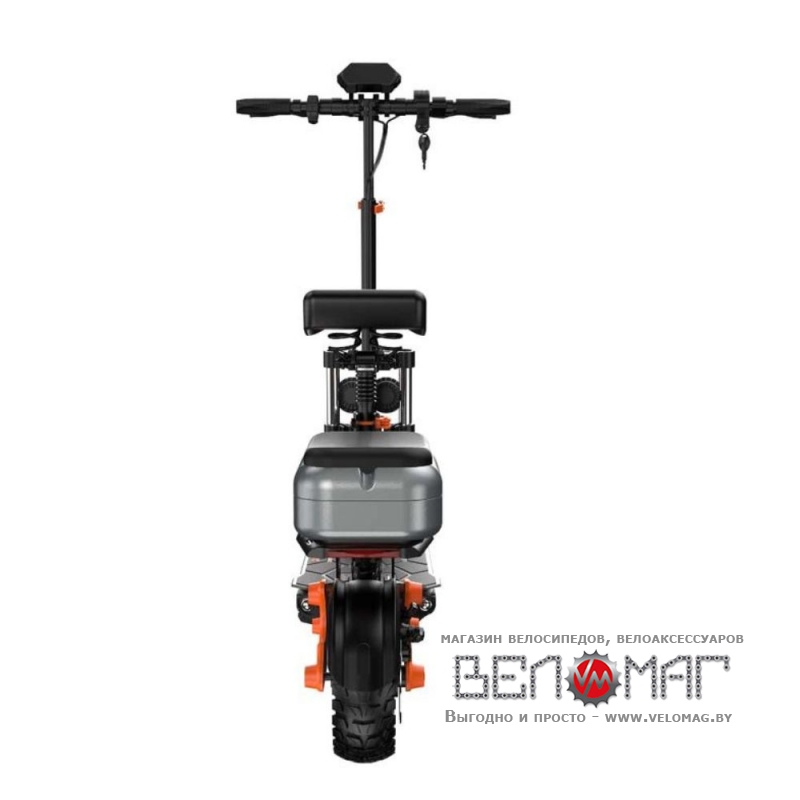 Управление простое, комфортное. На руле находятся ручки газа и тормоза. Заводится самокат так же, как мотоцикл (при помощи ключа). Есть бортовой компьютер и дисплей, на который выводится вся информация о текущей скорости передвижения, пробеге, заряде батареи.