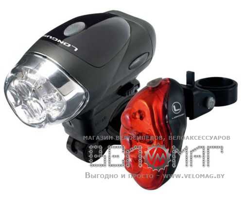 Комплект фар Longus: Свет передн 4LED/4ф-ции + Задн 5LED/4ф-ции, черн