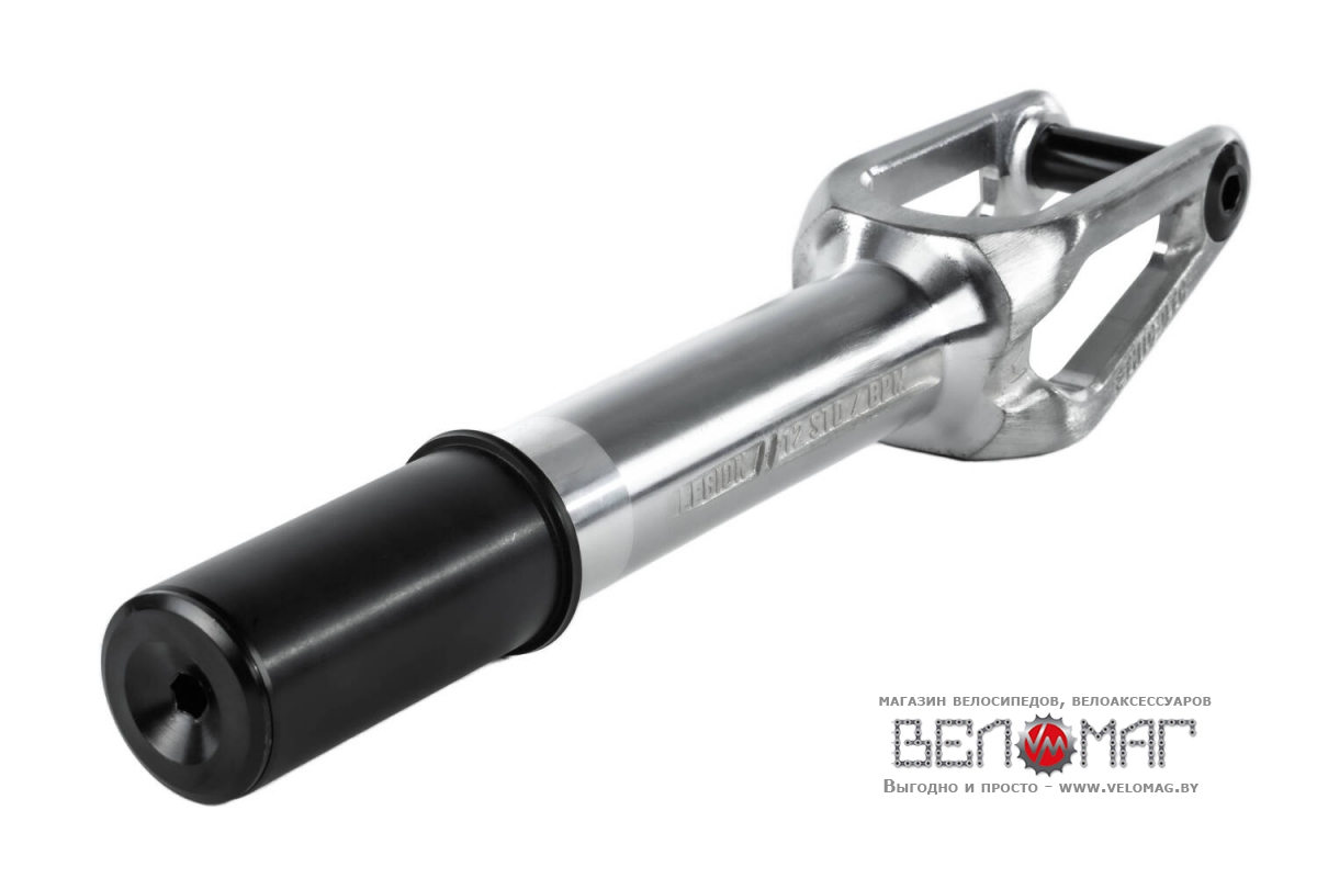 Legion 12STD V2 HIC от Ethic это цельная вилка для самоката по хорошей цене которая может использоваться с различными диаметрами колес в диапазоне от 110mm до 125mm. Эта вилка для самоката совместима с наиболее распространенной шириной основания колеса 24 mm, поэтому вы можете установить на нее большинство колес для самоката, в зависимости от их ширины. Вилка безрезьбовая, что означает, что труба рулевой имеет гладкую внешнюю поверхность без резьбы, и для ее работы необходима безрезьбовая рулевая.
